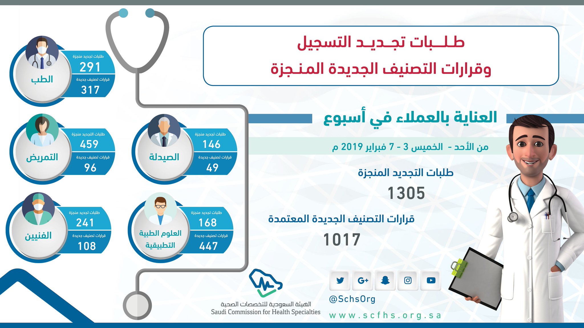 هـ يـ ئـ ة الـ تـ خـ صـ صـ ا ت الـ صـ حـ يـ ة No Twitter هيئة التخصصات الصحية انفوجرافيك 1017 قرار تصنيف منجز تم اعتماده خلال أسبوع و 1305 لطلبات التجديد المنجزه