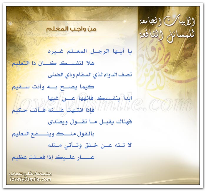 لا تنه عن خلق وتأتي مثله عار عليك إذا فعلت عظيم ابدأ بنفسك وانهها عن غيها فإذا انتهت عنه فأنت حكيم